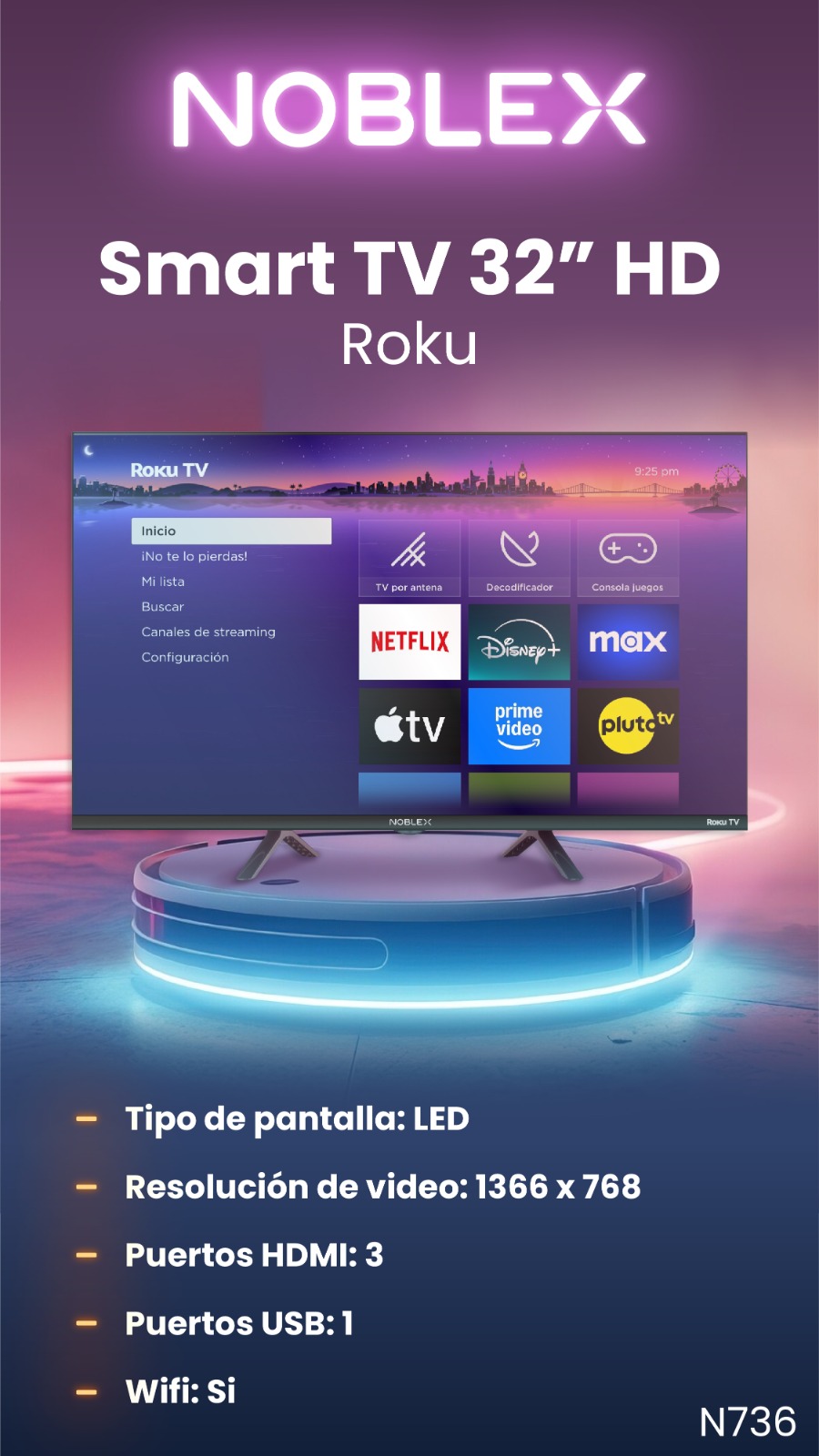 SMART TV 32" NOBLEX HD ROKU